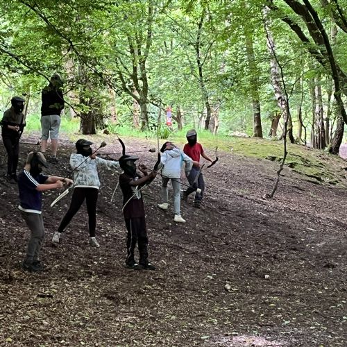 Year 5, Mrs Fernandes, Mrs Buller and Ms Izard have had a fabulous day in the forest! We have built shelters, created our own buggies, learnt some new knots to tie, been taught how to use a bow and arrow, had a series of archery battles across the great ditch and settled into our forest campsite with a cosy fire and smores.