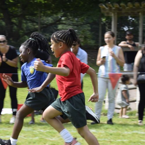 On Friday 17th June, Forty Hill held the annual Sports Day on the school field. The field was decorated with bunting and flags, with gazebos scattered under the trees for teams to seek shade under. It was a very warm day, but with plenty of water breaks and rests in the shade, all children had the most wonderful day of sport and fun. It was so fabulous to see so many of parents and extended families join us in the sunshine and break our community together again. The Friends of Forty Hill provided delicious homemade lemonade, strawberries and cream, as well as offering pre-loved uniform and face painting for younger siblings. The Phase 1 Sports Day was won by Green Chestnut House in the morning, with a special well done to Nursery who joined Reception, Year 1 and Year 2 for the first time. The Phase 2 Sports Day was won by Red Holly House in the afternoon and the afternoon was finished with a red lap of honour. So many happy memories made today!
