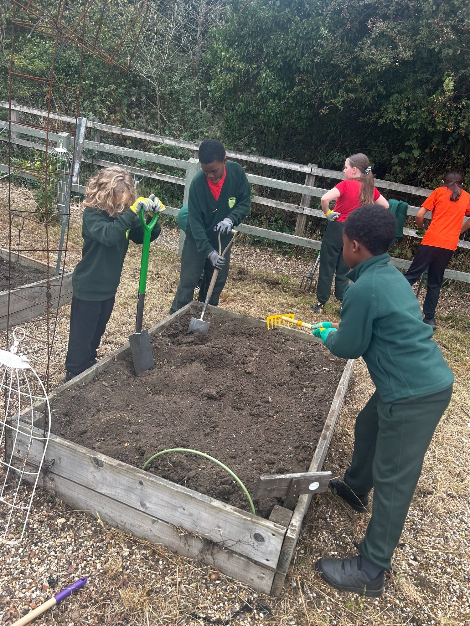 In 2021, we received a grant from the Local Authority to establish our own 'Edible Garden'. We invested in raised beds for every year groups, gardening equipment, seeds and bulbs and lots of compost! This project has grown since it's humble beginnings into a beautiful, flourishing vegetable garden that has been created and maintained by staff, parents and, most importantly, our children. This year (2025) we applied for a School Garden Grant and were successful in receiving more funding to continue this project along side some outreach support from Elsyng House. Our Year 5/6 Garden College work throughout the year to ensure our garden provides produce, education and serenity throughout the year and every year group has a raised bed which they plant up and harvest each year. Our community has benefitted from our garden through regular Produce Sales in the playground and even a stall selling soup made from our very own garden. Our gardens helps us to make steps towards being self-sufficient and more sustainable, as well as enabling us to fulfil our role as 'Stewards of God's Earth' and fulfilling our School Values of Responsibility, Respect and Compassion.